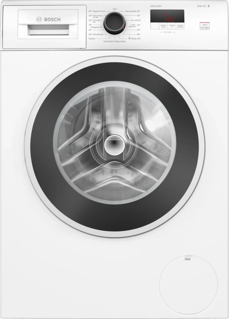 Ein echtes Alltagsplus ist SpeedPerfect. Damit lassen sich Programme beschleunigen, wenn es im Alltag einmal schneller gehen muss. Nicht jede Ladung braucht schließlich einen langen Standarddurchlauf, und genau hier zeigt sich der praktische Mehrwert einer modernen Waschmaschine. Die Bosch WGE02490 Waschmaschine ist dadurch nicht nur auf klassische Wochenwäsche ausgelegt, sondern auch auf spontane Situationen, in denen Zeit eine größere Rolle spielt. Für viele Haushalte ist genau das ein echter Komfortgewinn.