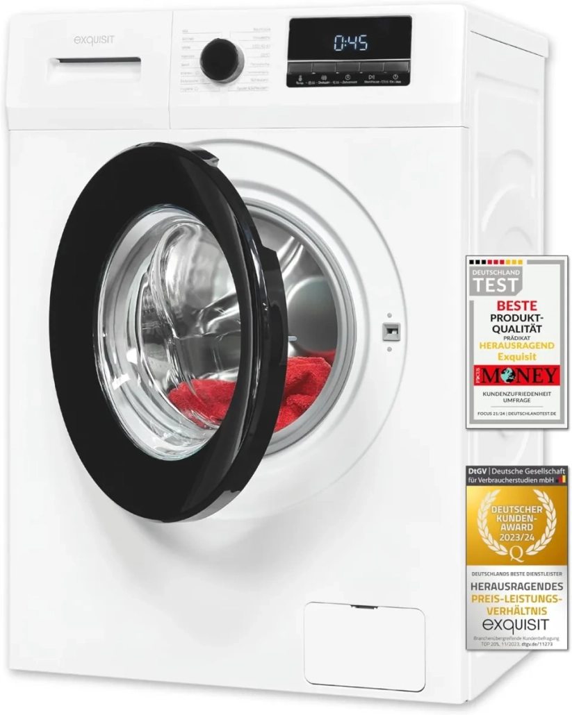 Die Exquisit WA8014-340A Waschmaschine ist eine starke, moderne und angenehm alltagstaugliche Waschmaschine für Haushalte mit etwas mehr Wäsche. Ihr bekommt hier 8 kg Fassungsvermögen, 1.400 U/min, Energieklasse A, 16 Programme, LED-Display, Restlaufanzeige, Startzeitvorwahl, Aquastop, Waschtrommelreinigung und mehrere sinnvolle Komfortfunktionen in einem stimmigen Gesamtpaket. Wenn Ihr eine Waschmaschine mit 8 kg sucht, die im Alltag viel Wäsche souverän bewältigt, stark schleudert und trotzdem nicht unnötig klobig wirkt, dann ist die Exquisit WA8014-340A Waschmaschine definitiv ein Modell, das Ihr Euch näher anschauen solltet.